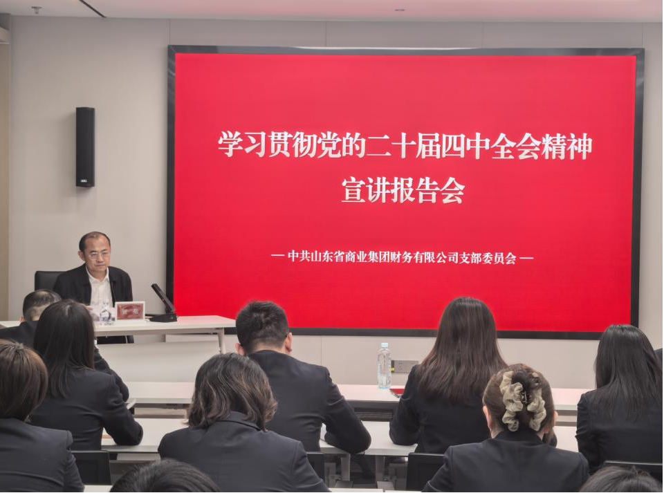 12月26日,集团宣讲团成员,集团党委常委、副总经理、首席合规官贺敬到财务公司宣讲党的二十届四中全会精神,引导全体干部职工认真贯彻落实全会精神,统一思想、凝聚共识,以实干担当推动集团高质量发展。